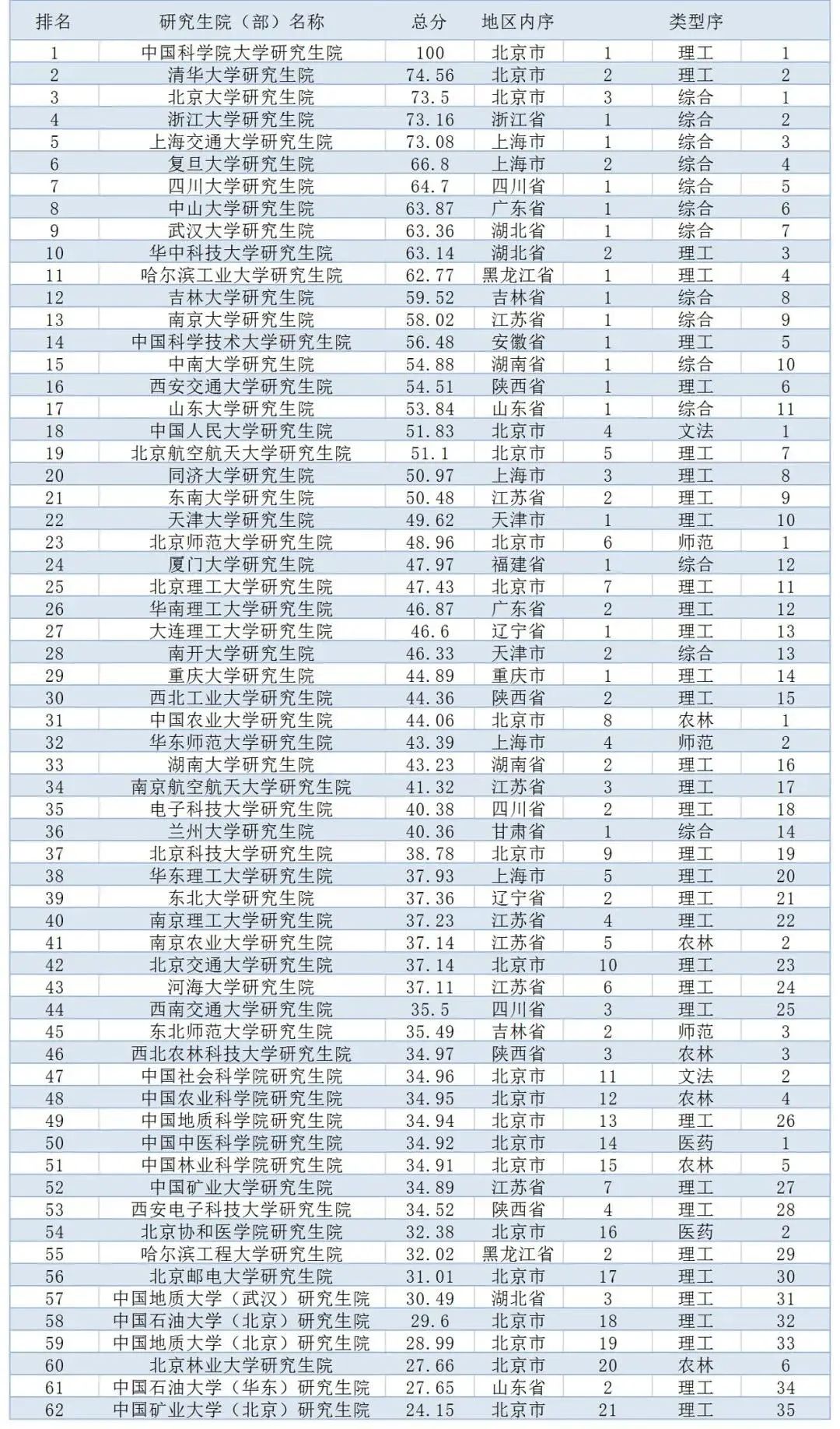 注:榜單上共62所院校,不包括部分軍事類院校和港澳臺地區高校。