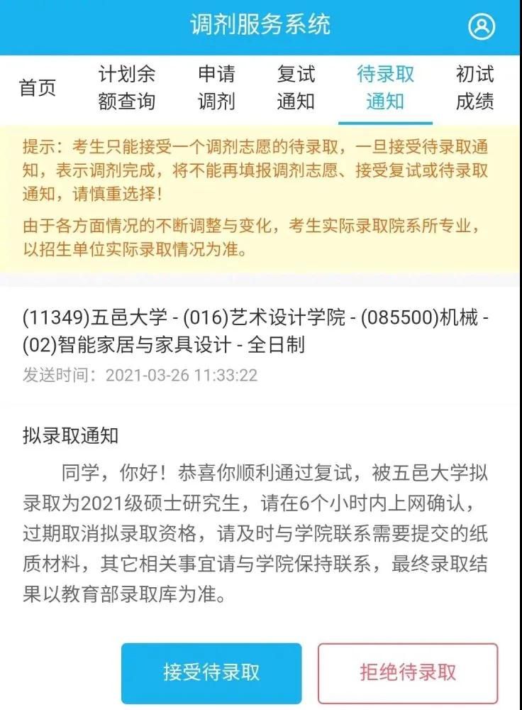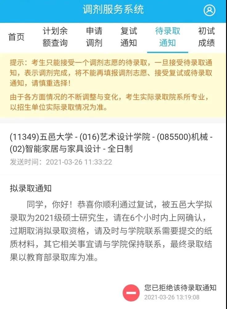 看到這你也許會好奇,這位同學最后是怎么選擇的,其實最終他還是拒絕了待錄取。雖然小編不太建議這種做法,但對于他個人來說,的確是一個更好的選擇,因為復試還未開始,他還有被錄取的機會。