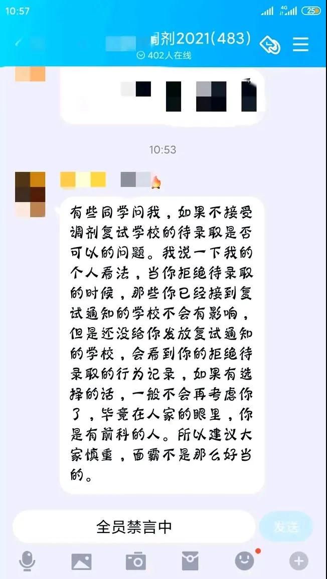 另外一個原因是,如果放棄了調劑院校擬錄取的機會,這些流程其他學校是可以查看到的,也許會影響到校方對自己的印象,導致復試失敗。這一點,某學校一位負責調劑的老師也給出了建議。
