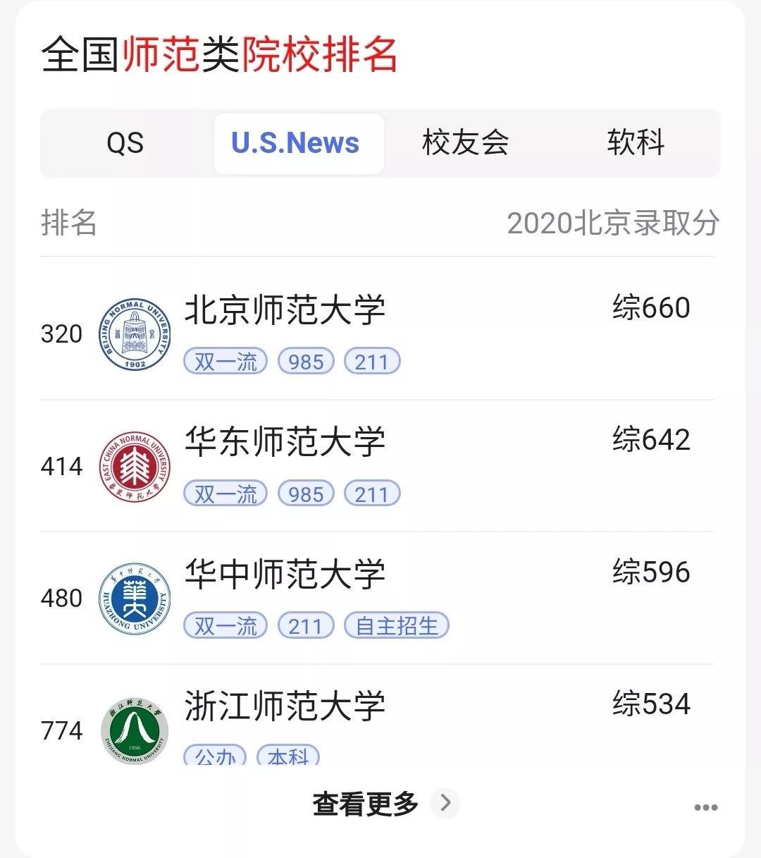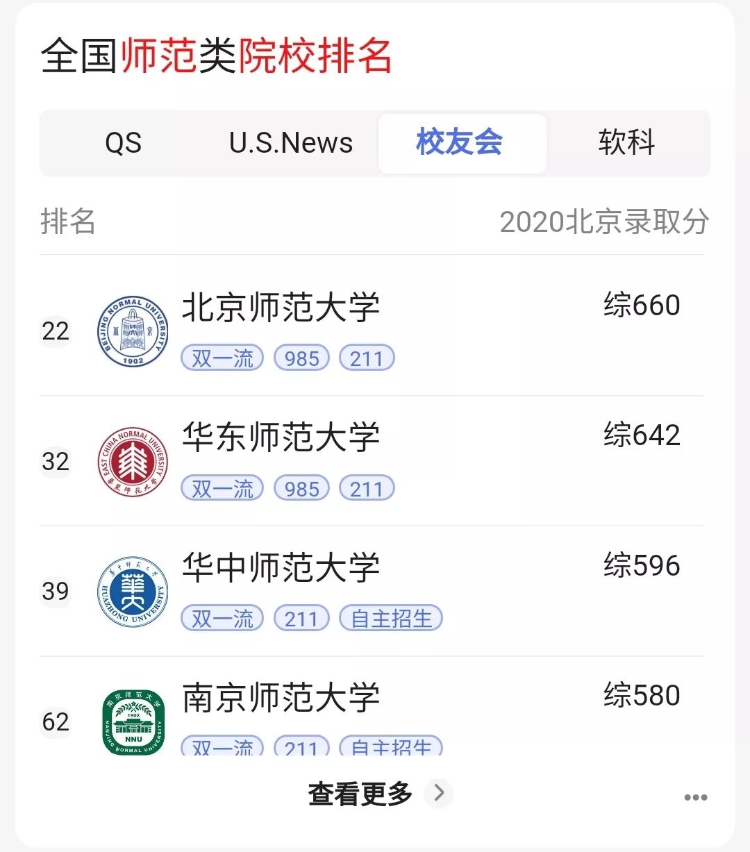 各大平臺,其給出是數據,會有一些共性。比如,北京師范大學不管怎么排,基本都會排在第一名。沒辦法,這就是實力與顏值的絕對優勢了!但是,大家也很容易發現,除了北師大以外,其他一些師范類院校,在每一個平臺的排名都不太一樣。