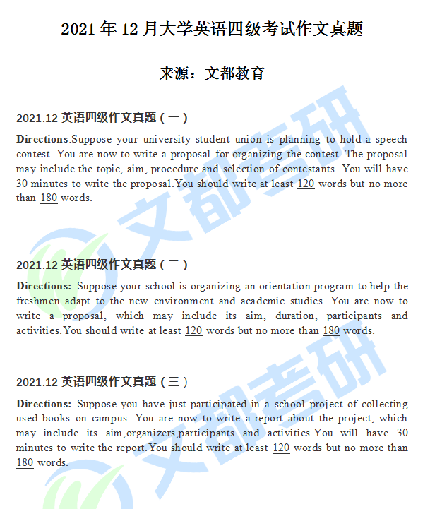 2021年12月的大學英語四級考試終于在緊張的氛圍中落下帷幕,希望各位考生都能取得一個好成績。文都小編為大家及時整理了2021年12月英語四級作文真題,快來一起看一下吧!