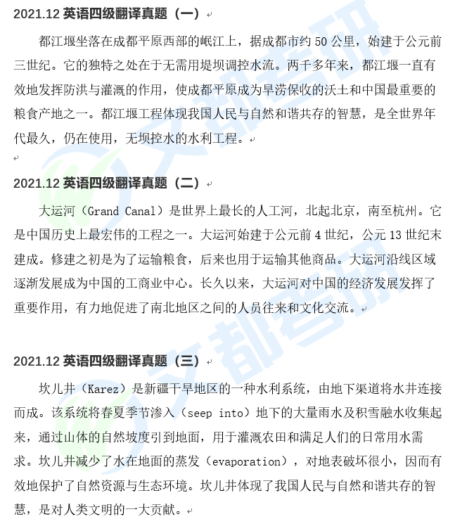 2021年12月的大學(xué)英語四級考試終于在緊張的氛圍中落下帷幕,希望各位考生都能取得一個好成績。文都小編為大家及時整理了2021年12月英語四級翻譯真題,快來一起看一下吧!