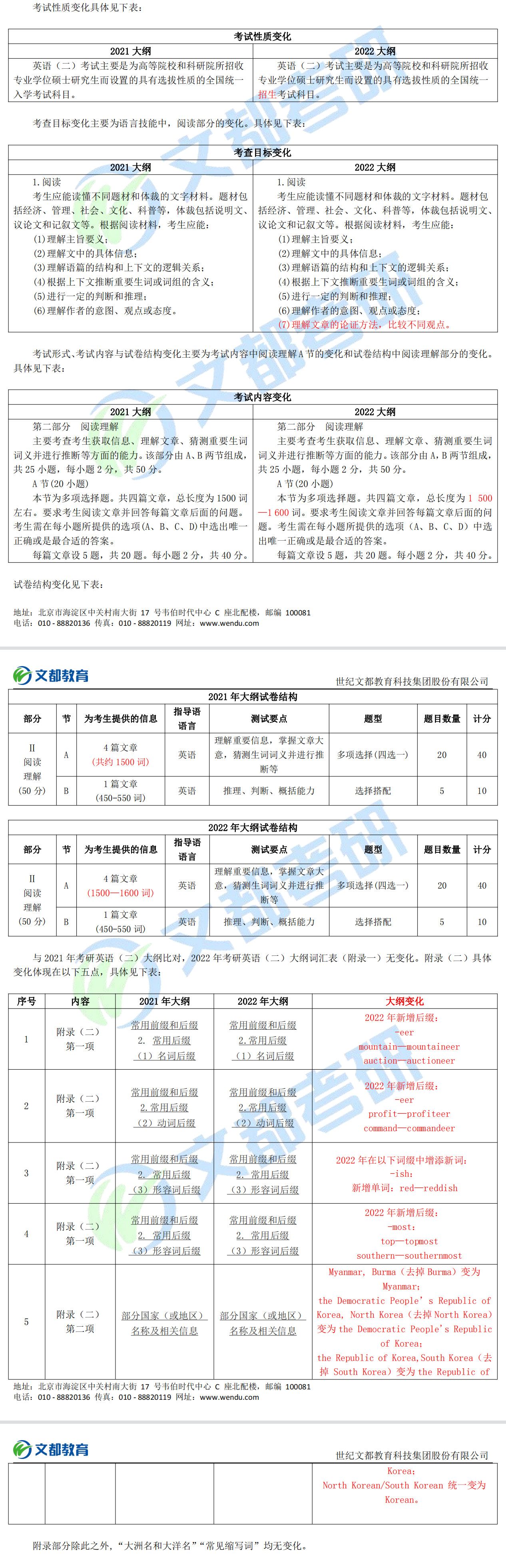 2022年考研英語二大綱與2021年考研英語二大綱對比解析