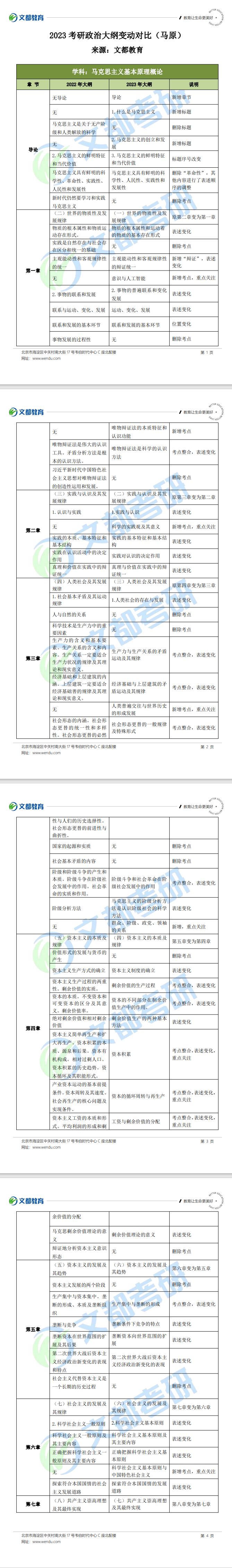 2023考研政治大綱變動對比(馬原)