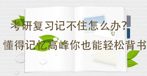 考研是個大工程,我們總會面臨記了就忘,忘了再記。但總感覺時間花費時間和精力,但是還是記憶不深刻。考研復(fù)習(xí)記不住怎么辦?懂得懂得記憶高峰你也能輕松背書。