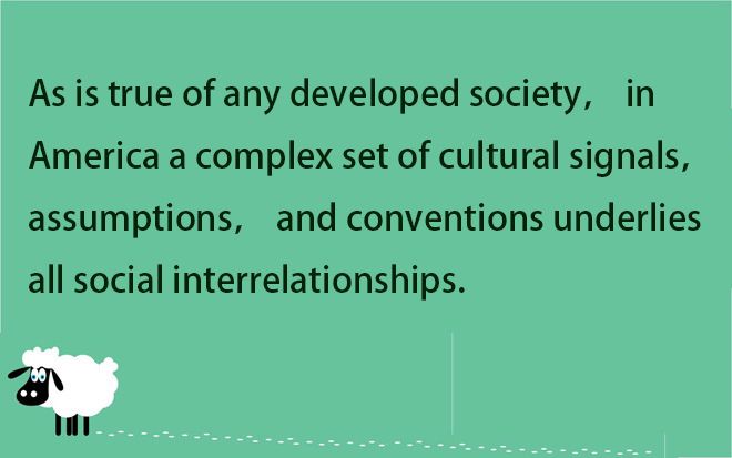 【譯文】同任何發(fā)達國家一樣,一系列復雜的文化特征,信念和習俗構成了美國所有社會交往的基礎。