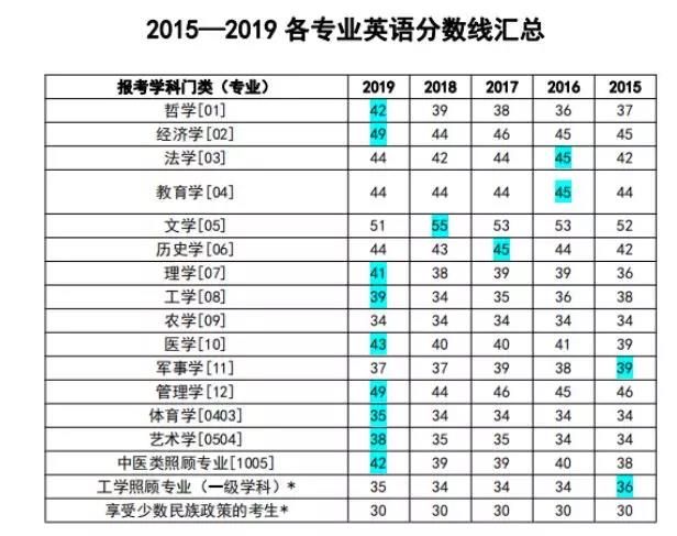 英語各專業(yè)分?jǐn)?shù)線匯總