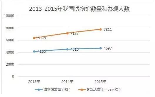 The number of museums in China has risen from 4165 to 4697 from the year of 2013 to 2015.