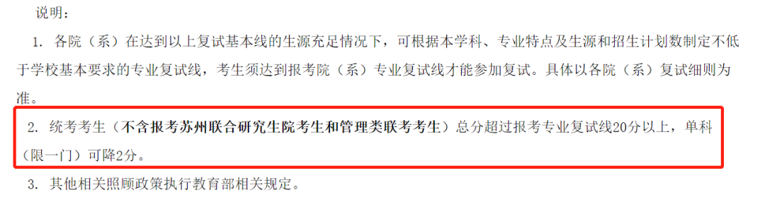 對初試公共科目成績略低于全國初試成績基本要求(即國家線),但專業科目成績特別優異或在科研創新方面具有突出表現的考生,可允許其破格參加第一志愿報考單位第一志愿專業復試(簡稱破格復試)。