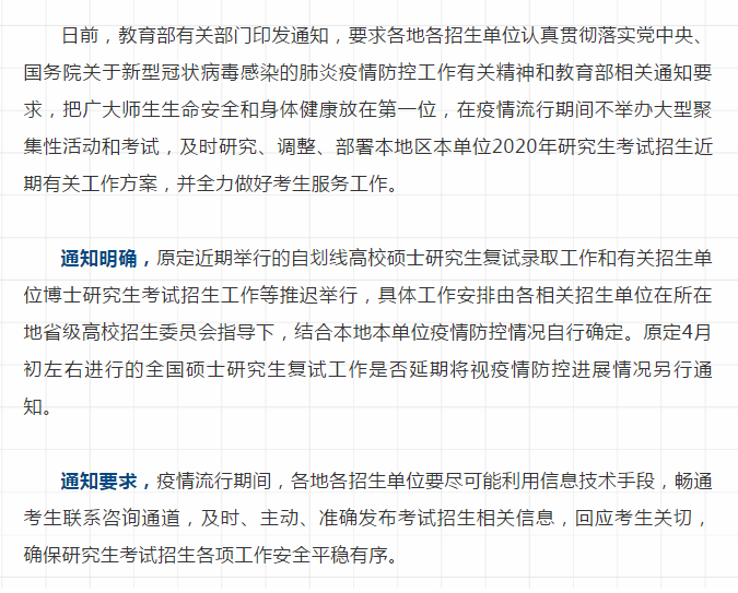 也就是說:原定4月初左右進(jìn)行的全國碩士研究生復(fù)試工作是否延期將視疫情防控進(jìn)展情況另行通知。
