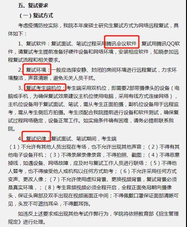 該學院采用的是網(wǎng)絡復試,并公布了一些相關細節(jié)。關于復試軟件、復試環(huán)境、機位和紀律等方案公告中都有詳細描述,同學們可以參考一下,當然具體的還是以自己所報院校為準噢。