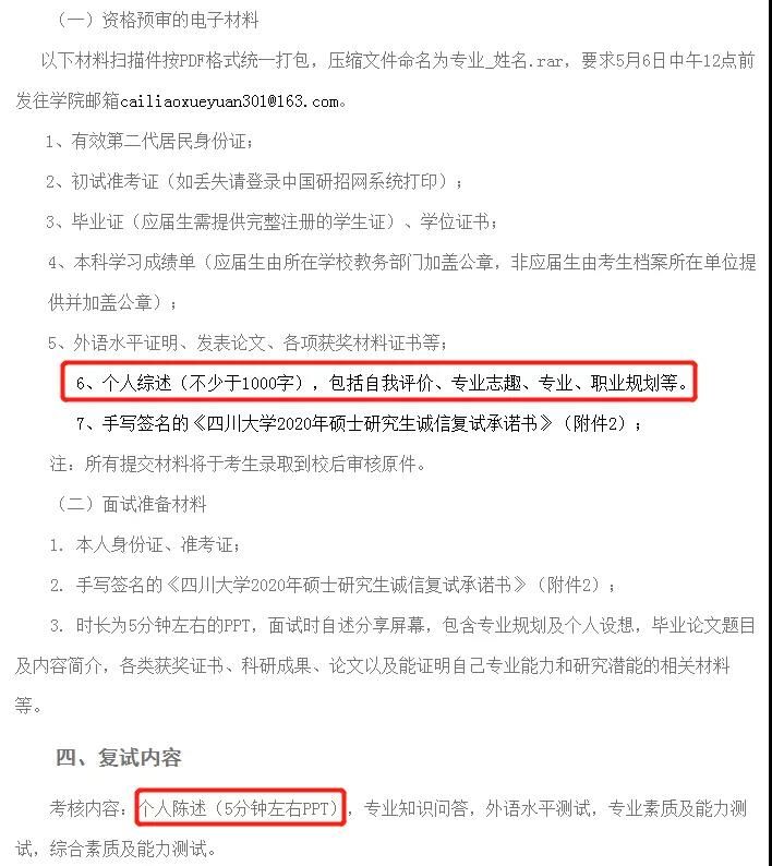 四川大學原子核科學技術研究所要求要有時長為5分鐘的個人自述PPT匯報。