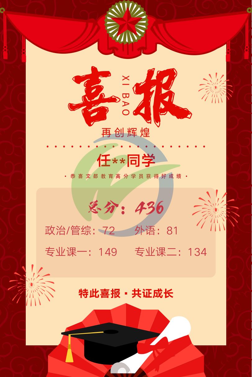 文都高分學子初試捷報——436分