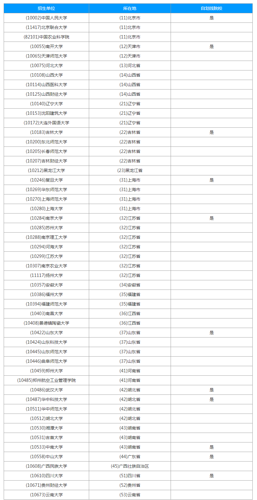 哈工大 | 吉林大學 | 東南大學 | 南京大學 | 上海交大 | 同濟大學 | 復旦大學 | 山東大學 | 大連理工 | 蘭州大學 | 重慶大學 | 西工大 | 西安交大 | 電子科大 | 四川大學 | 中科大 | 武漢大學 | 華中科大 | 中南大學 | 湖南大學 | 廈門大學 | 中山大學 | 浙江大學 | 天津大學 | 南開大學 | 中國農大 | 北京航空 | 北京理工 | 北京師范 | 人民大學 | 北京大學 | 清華大學 |