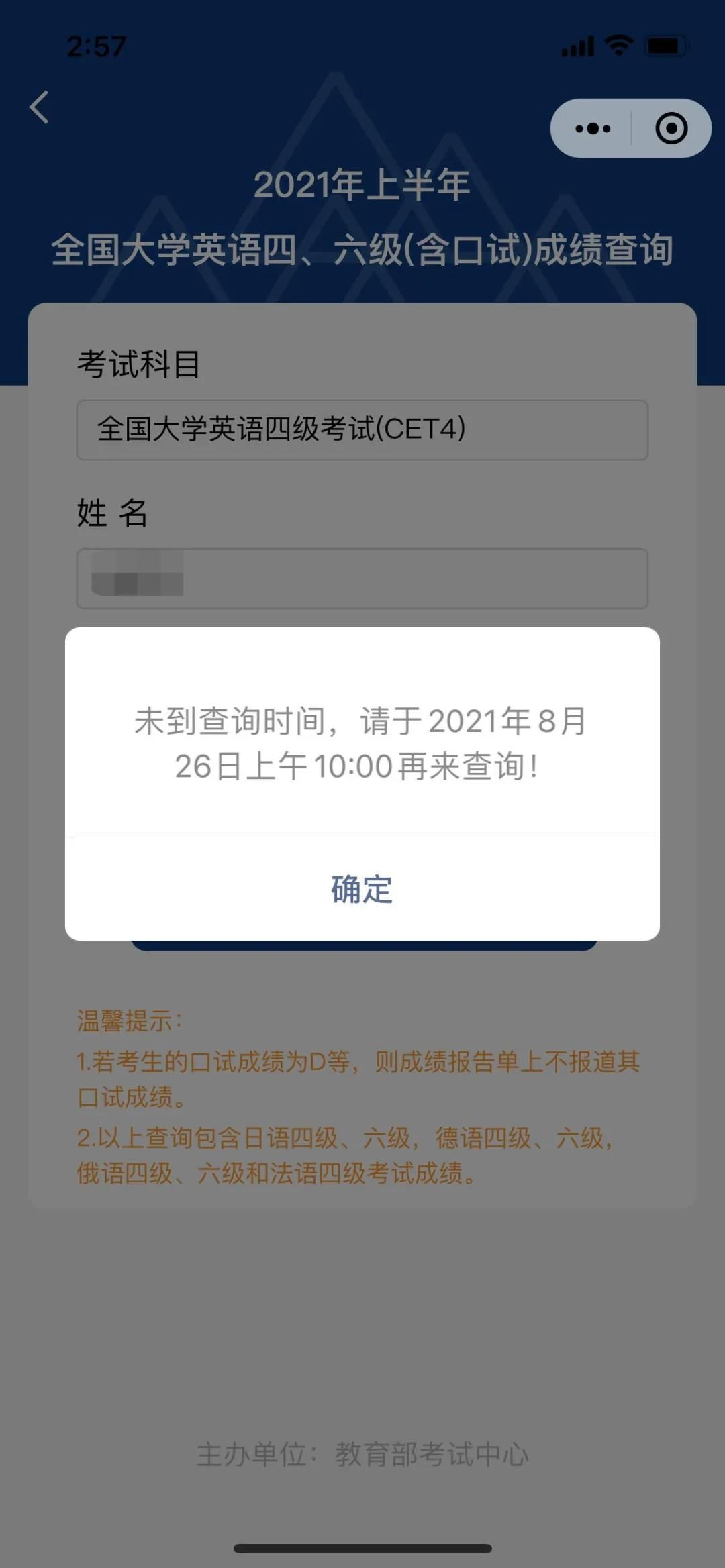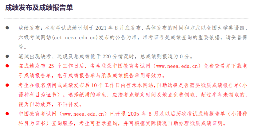 中國教育考試網公布2021年上半年四六級成績將于8月26日 上午10:00發布! 大家后天就能查成績啦!