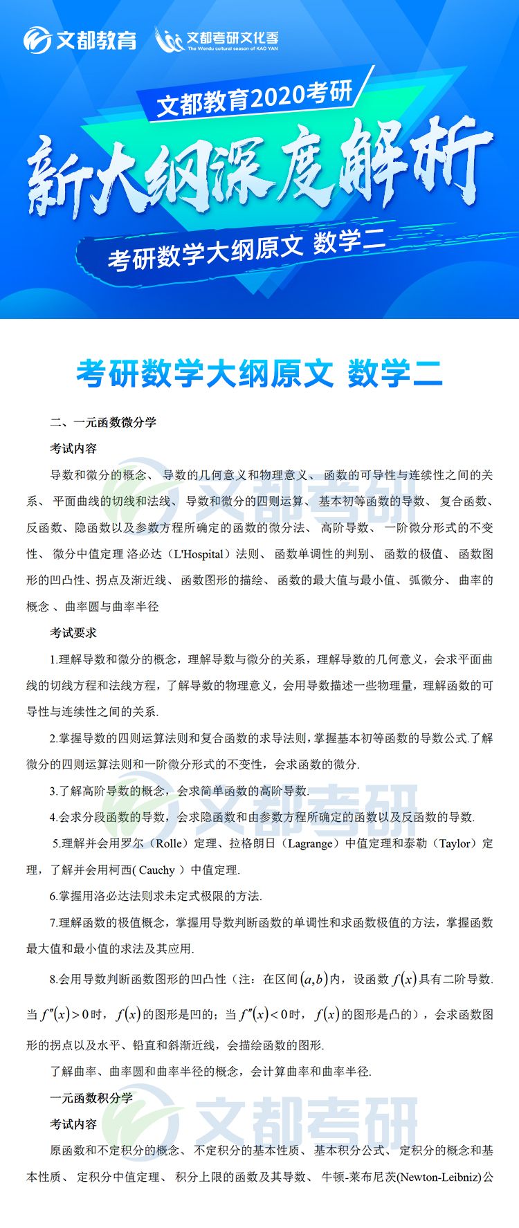 2020年全國碩士研究生招生考試數(shù)學(xué)考試大綱(數(shù)學(xué)二)
