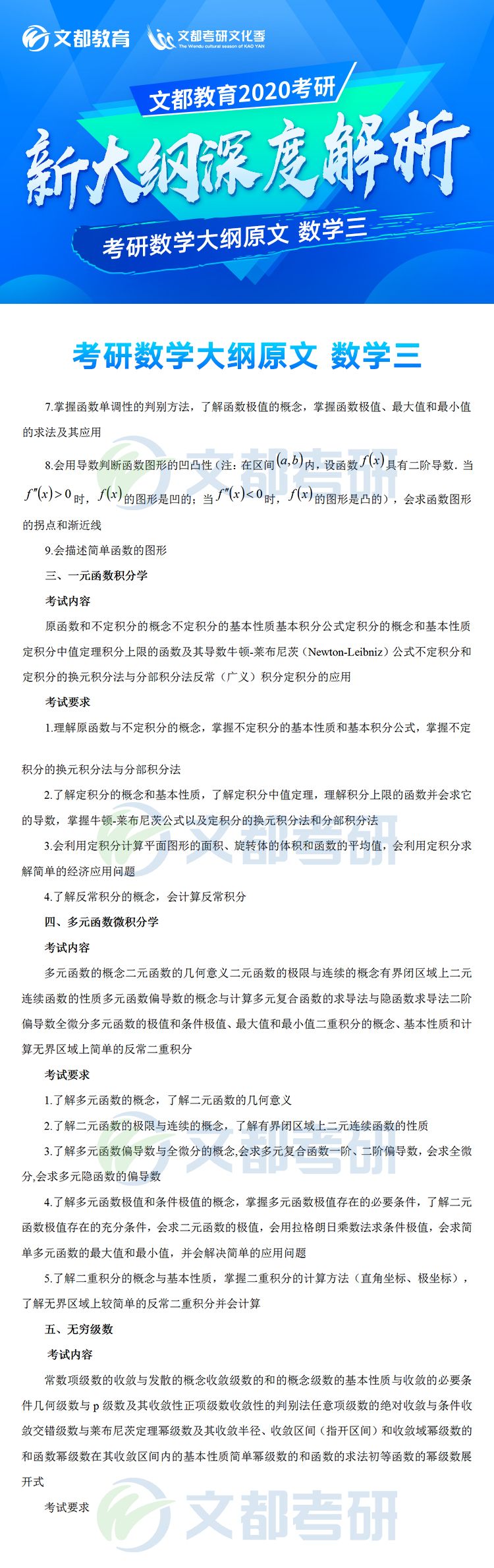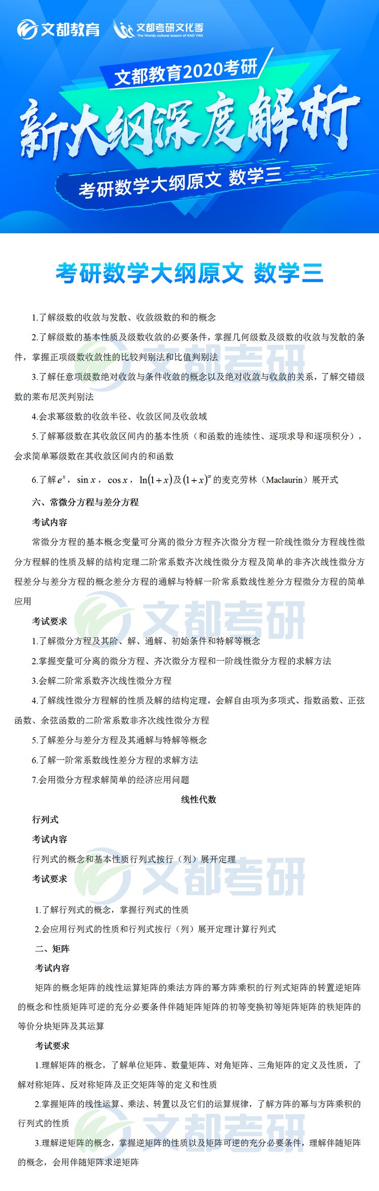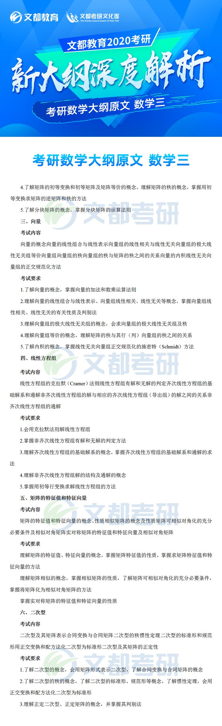 2020年全國碩士研究生招生考試各科目考研大綱已于7月8日發布,對于考生來說這是非常好的消息,有充足的時間根據新的大綱知識點進行專業課復習,考研數學大綱對參加研究生考試的考生考研數學復習具有指導意義,它可以有效矯正考生復習方向偏差的問題,讓復習方向化零為整,提高效率。。如果你還不清楚,不妨看看2020年全國碩士研究生招生考試數學考試大綱(數學三)的文章,如有需要及時加入陜西文都20考研交流群, 陜西文都考研網持續為您提供考研所需的相關指導信息。20考研資料共享:【互動可加群】丨官方網站【@陜西文都考研】
