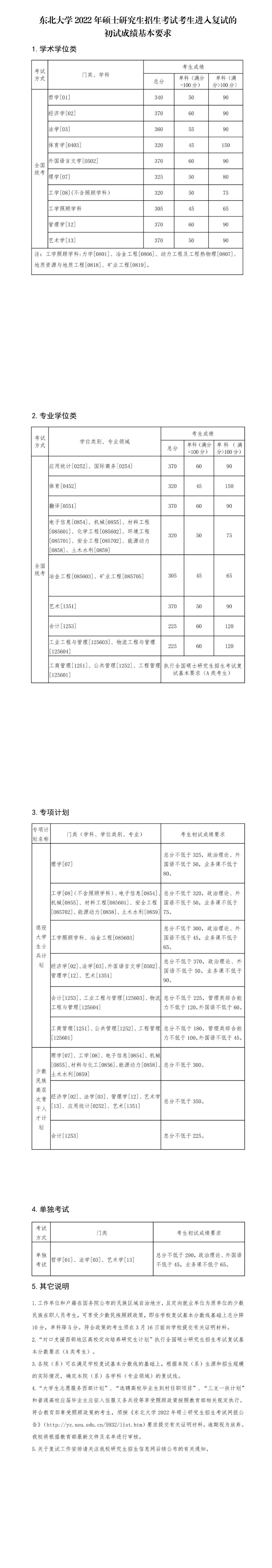 東北大學(xué)2022年碩士研究生招生復(fù)試基本分?jǐn)?shù)線