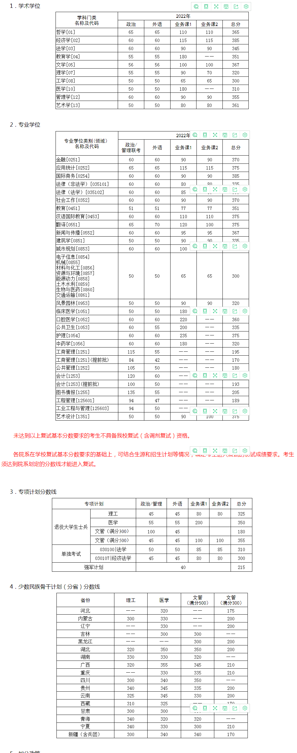 根據(jù)教育部有關規(guī)定,結(jié)合學校實際情況,經(jīng)學校研究生招生領導小組會議研究決定我校2022年碩士研究生招生考試復試基本分數(shù)要求如下: