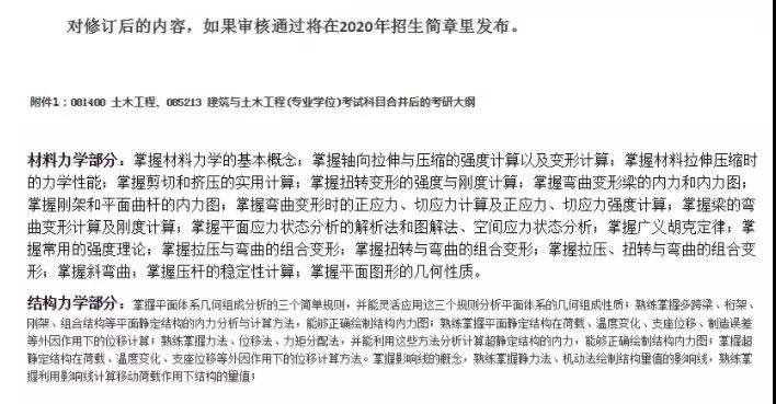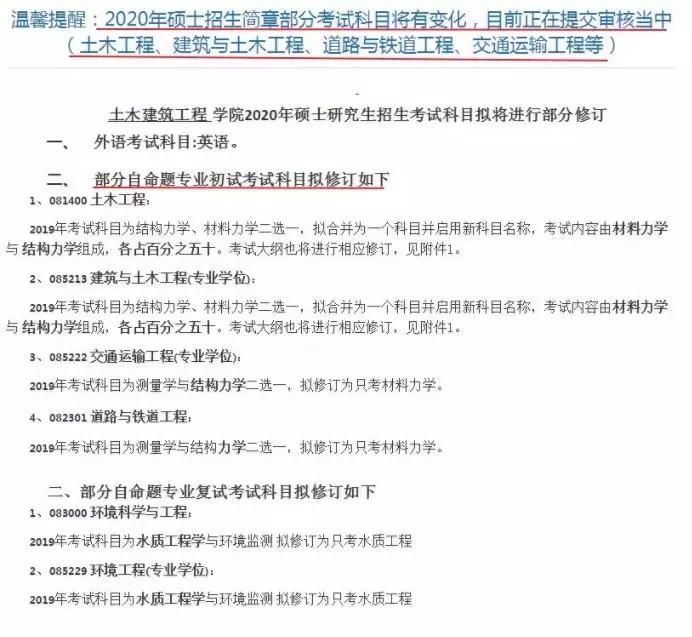 據北京交通大學土木建筑工程學院官網公告:土木工程、建筑與土木工程、道路與鐵道工程、交通運輸工程等專業考試科目有變化,但是正在提交審核中。不過北交的老師算比較貼心的了,把土木工程和建筑與土木工程(專業學位)的考試大綱給我們貼出來了。