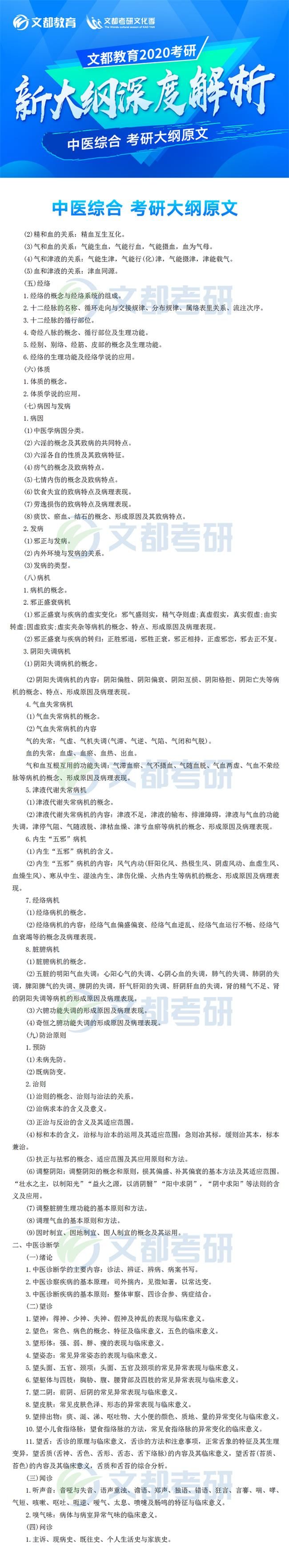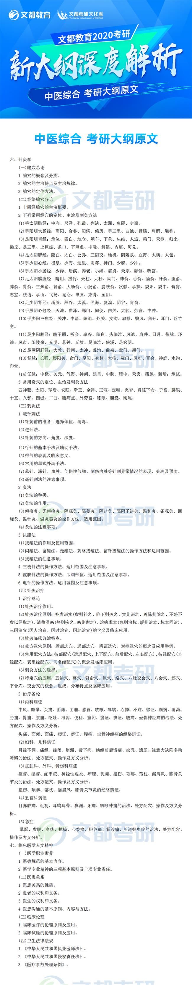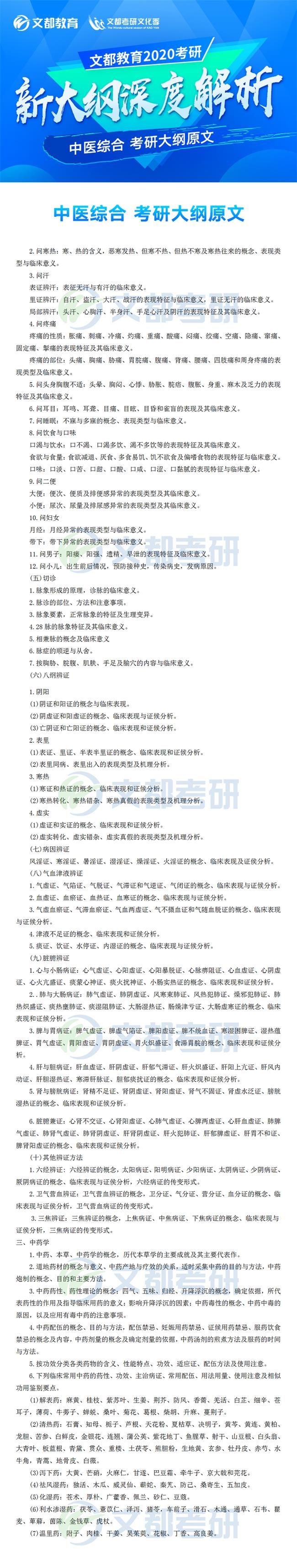 2020年全國碩士研究生招生考試各科目考研大綱已于7月8日發布,對于考生來說這是非常好的消息,有充足的時間根據新的大綱知識點進行專業課復習,考研中醫綜合大綱對參加研究生考試的考生考研中醫綜合復習具有指導意義,它可以有效矯正考生復習方向偏差的問題,讓復習方向化零為整,提高效率。如果你還不清楚,不妨看看2020年全國碩士研究生招生考試中醫綜合考試大綱的文章,如有需要及時加入陜西文都20考研交流群, 陜西文都考研網持續為您提供考研所需的相關指導信息。20考研資料共享:【互動可加群】丨官方網站【@陜西文都考研】
