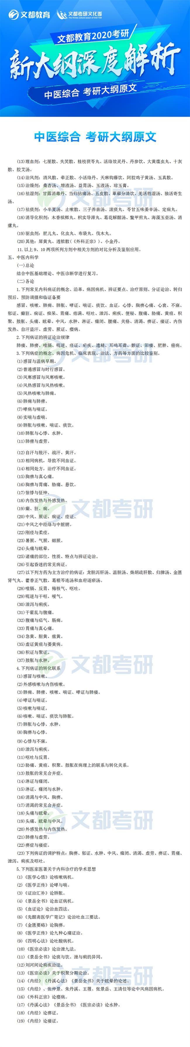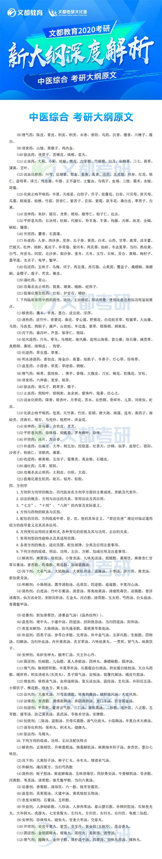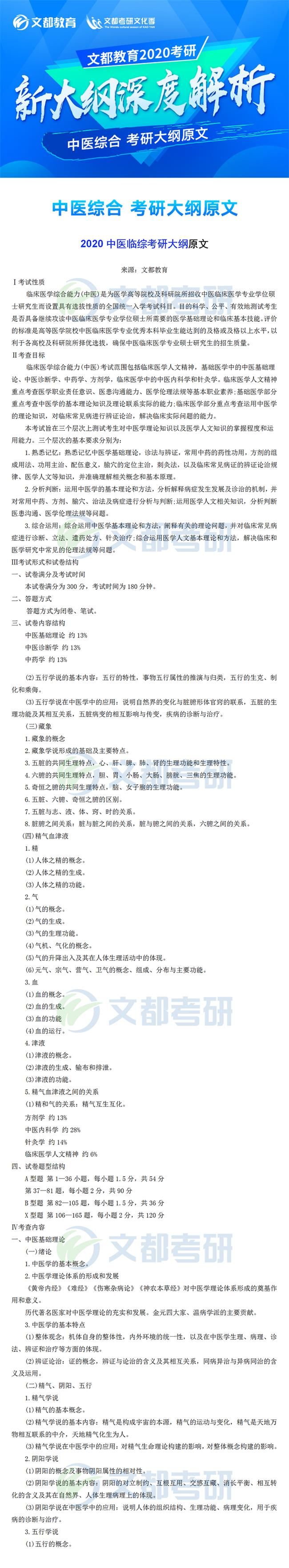 2020年全國碩士研究生招生考試各科目考研大綱已于7月8日發布,對于考生來說這是非常好的消息,有充足的時間根據新的大綱知識點進行專業課復習,考研中醫綜合大綱對參加研究生考試的考生考研中醫綜合復習具有指導意義,它可以有效矯正考生復習方向偏差的問題,讓復習方向化零為整,提高效率。如果你還不清楚,不妨看看2020年全國碩士研究生招生考試中醫綜合考試大綱的文章,如有需要及時加入陜西文都20考研交流群, 陜西文都考研網持續為您提供考研所需的相關指導信息。20考研資料共享:【互動可加群】丨官方網站【@陜西文都考研】
