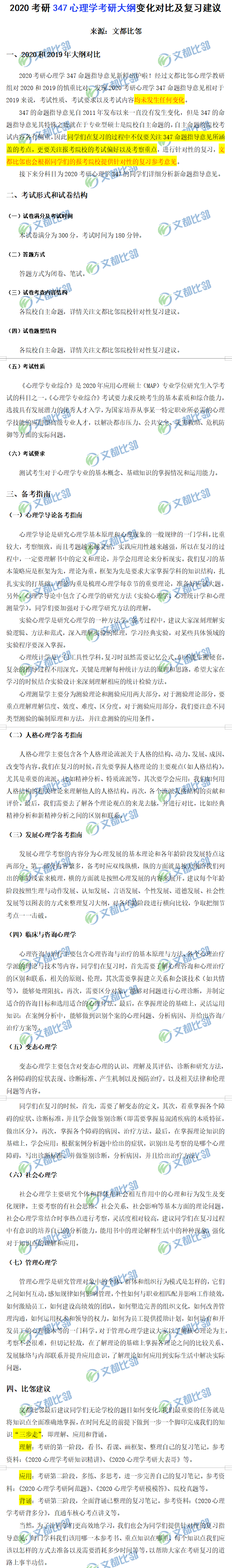 2020考研347心理學考研大綱變化對比及參考建議
