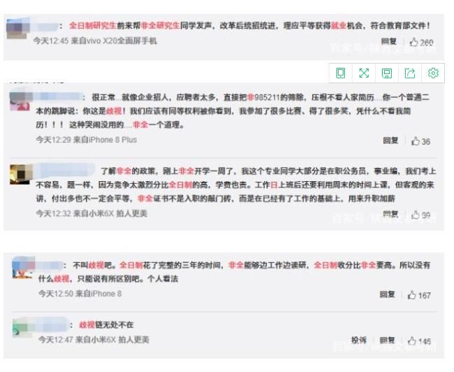 付出了同樣甚至更多努力的非全日制研究生,為什么要被歧視?網友紛紛發表了自己的想法。