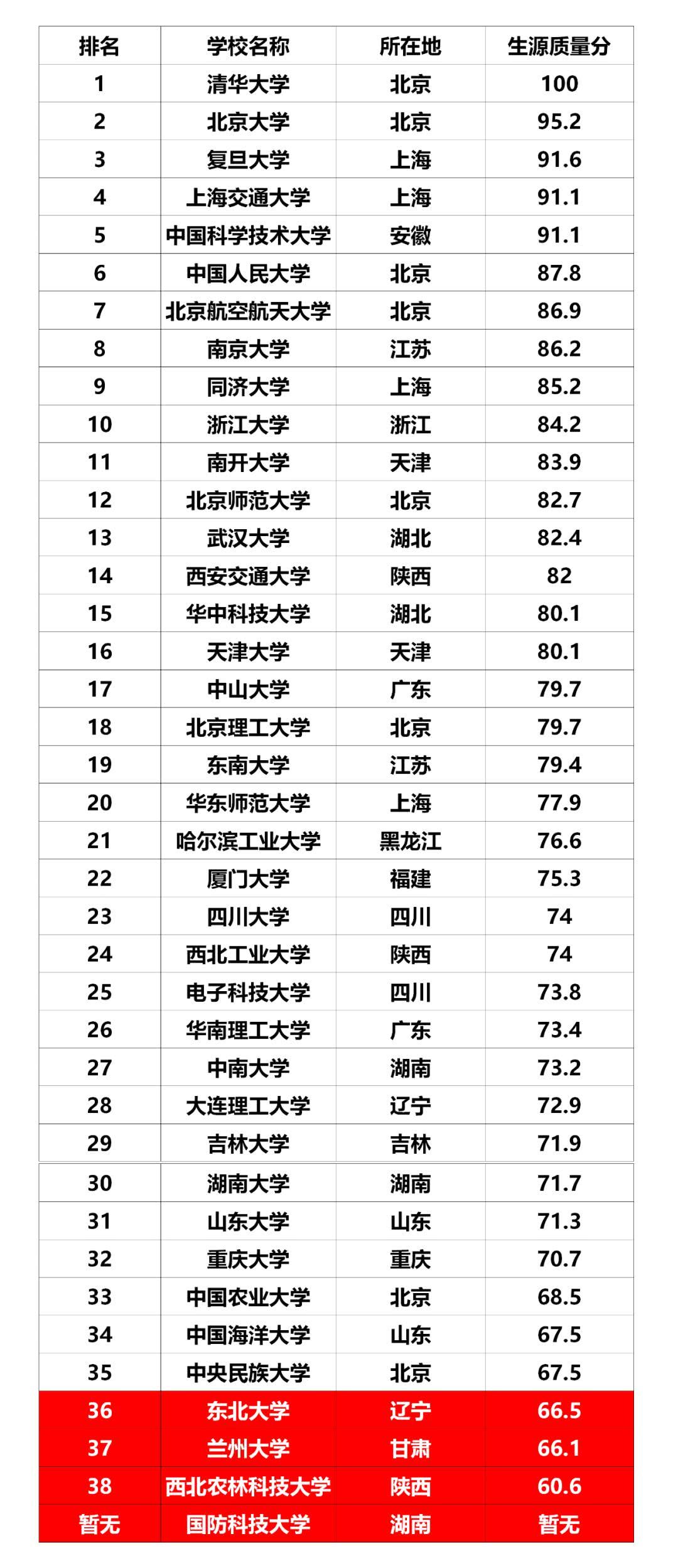 從上圖中我相信大家不難看出,除了國防科技大學由于軍校屬性,不參加排名之外,諸如:中國海洋大學、東北大學、蘭州大學、西北農林科技大學等院校,他們基本上都是倒數幾名了,所以要說淘汰自然也是這幾所大學。