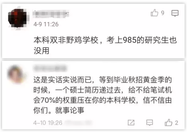 引發網友熱議,很多網友為他們點贊,但也有人嘲諷他們,“本科雙非考上985的研究生也沒用”。