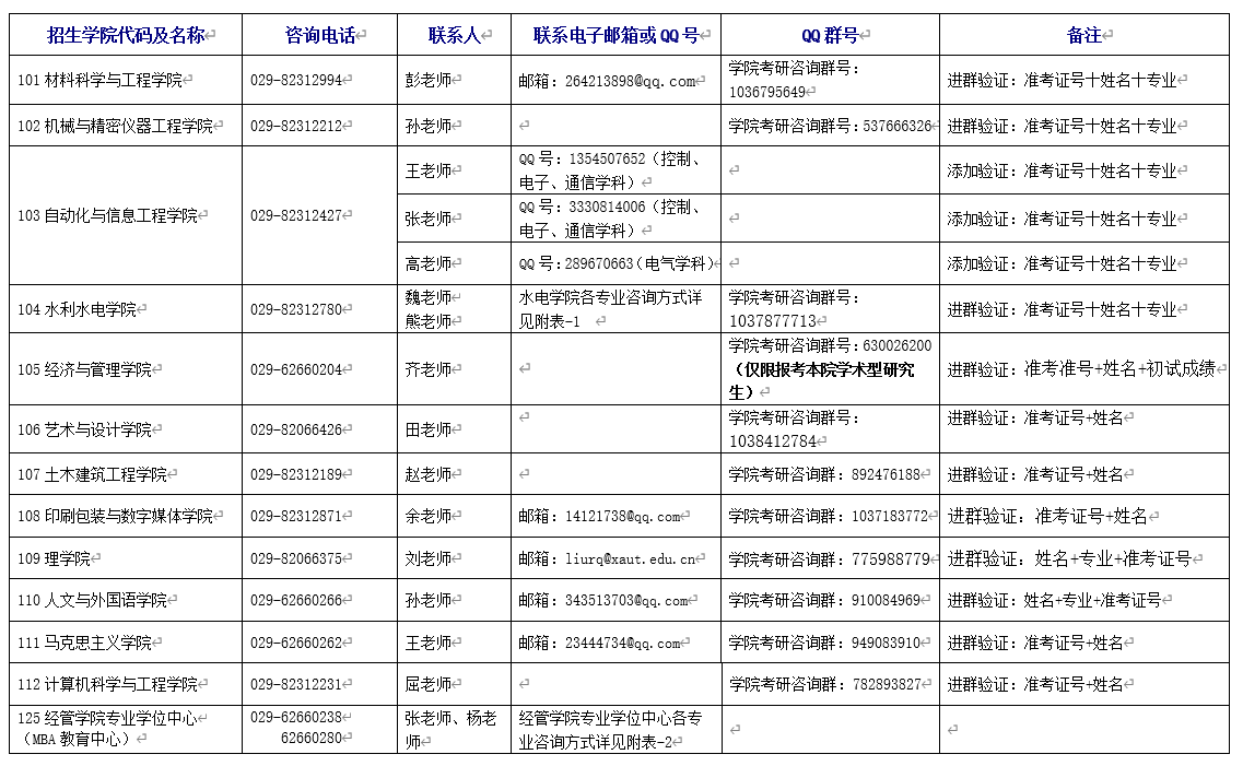 二、各招生學院咨詢聯系方式: