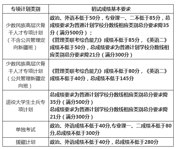 (1)參加“大學生志愿服務西部計劃”“三支一扶計劃”“農村義務教育階段學校教師特設崗位計劃”“赴外漢語教師志愿者”等項目服務期滿、考核合格的考生,3年內參加全國碩士研究生招生考試的,初試總分加10分,同等條件下優先錄取。