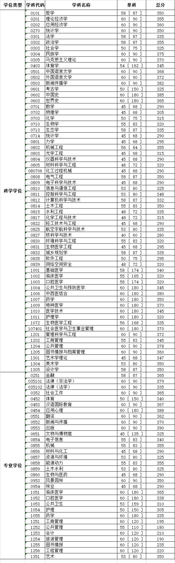 四川大學2020年碩士研究生入學考試初試合格線