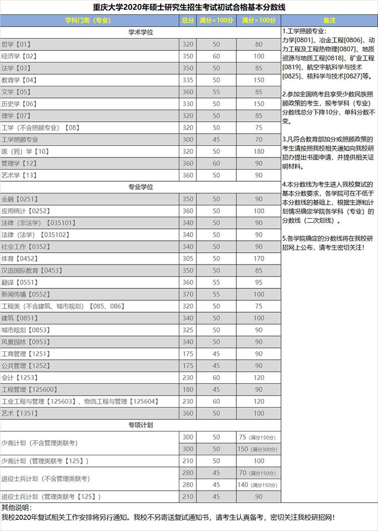 重慶大學(xué)發(fā)布2020年碩士研究生招生復(fù)試基本分數(shù)線