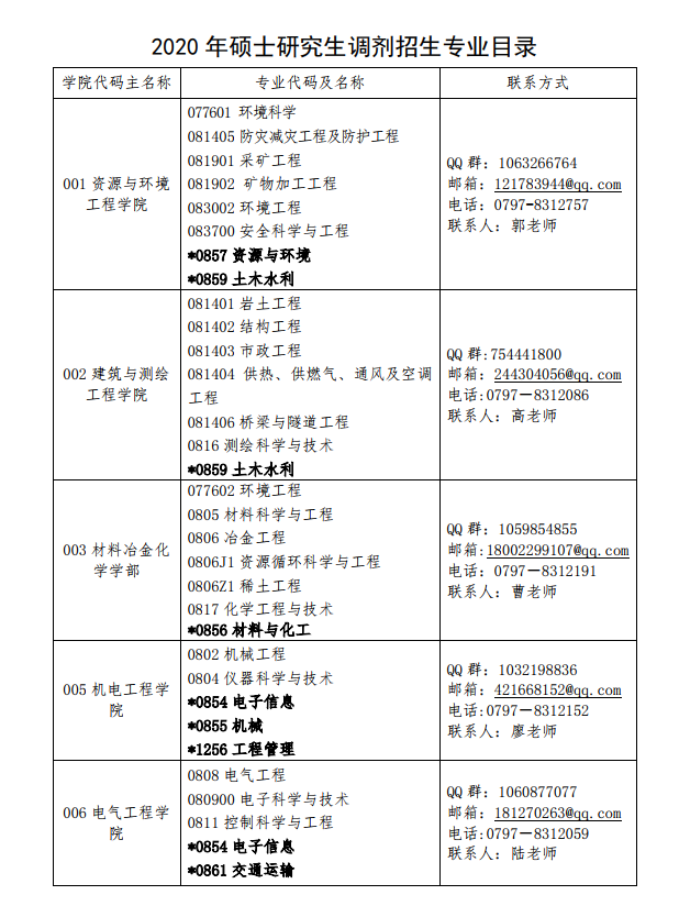 2.必須符合《江西理工大學2020年碩士研究生招生簡章》中規定的調入專業的報考條件,包括各專業備注欄中的要求。