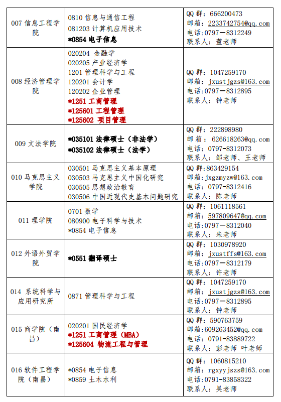 4. 招生各專業相關信息可查閱學校2020年研究生招生簡章,網址為http://yz.jxust.edu.cn/view/1568172872134.html