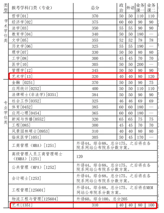 而在今年,所有的慣例都貌似再被打破。清華的藝術類復試線竟然比國家線定的還低。其中藝術類學碩總分320分,比國家線的347分低27分,藝術類專碩310分比國家線低37分,也是難見的奇觀。不過本著寧缺毋濫的原則和北京旱區壓分的傳統,這也不意味著會缺好生源。