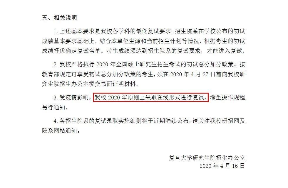 復(fù)旦大學(xué)明確提到了“原則上采取在線形式進(jìn)行復(fù)試”