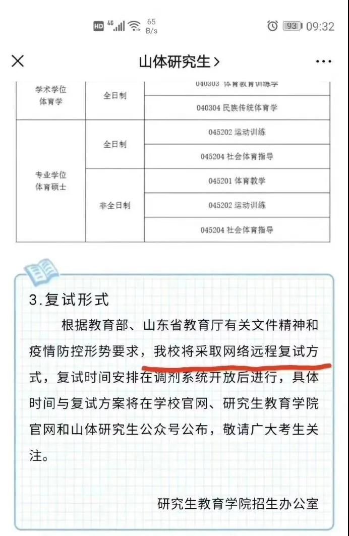 山東體育學(xué)院確定采取網(wǎng)絡(luò)遠(yuǎn)程復(fù)試方式