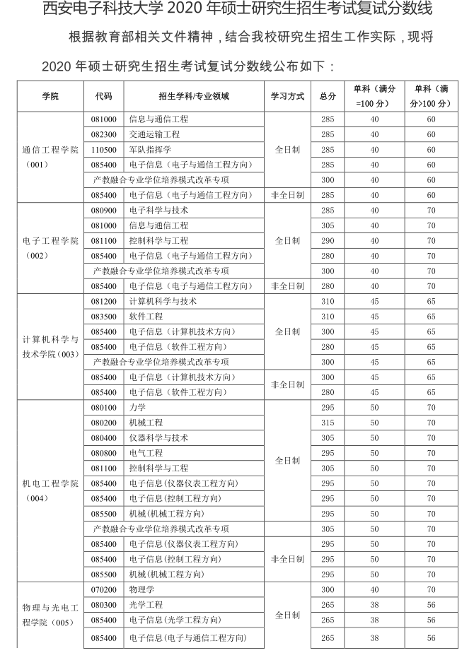 >34所自劃線院校2020考研復試分數線。點擊查看>>陜西各高校2020年研究生復試分數線匯總。2020考研國家線已公布,復試時間原則上不早于4月30日,網上調劑時間為5月20日左右2020年西安電子科技大學復試分數線 當前2020">