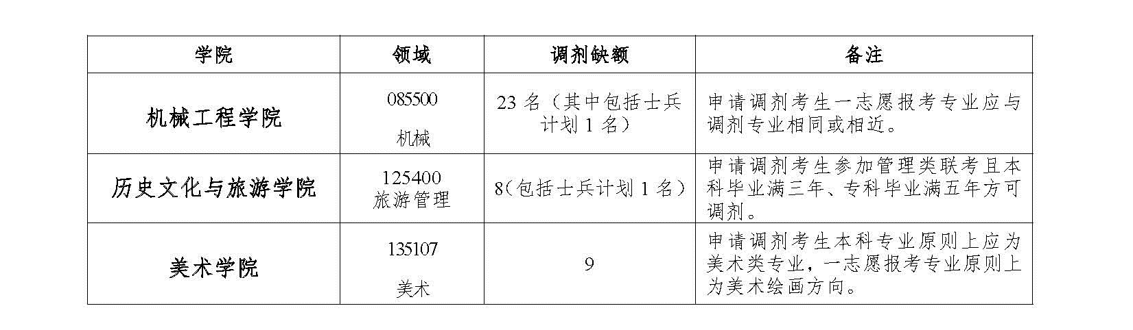 (3)調(diào)劑機(jī)械碩士、化學(xué)、旅游管理、2018年部分新增學(xué)科(哲學(xué)、數(shù)學(xué)、物理學(xué)、教育學(xué))的視生源情況可適當(dāng)放寬條件。