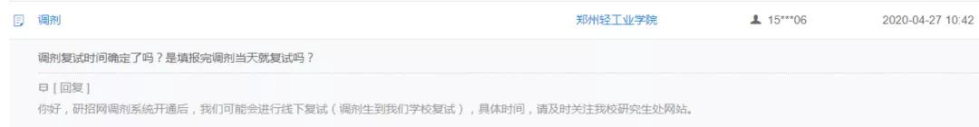 鄭州輕工業學院在研招網問答中回復調劑生可能會到校復試。