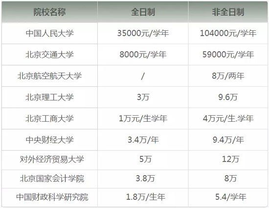 學費方面,雖然非全日制上的課少,但學費貴啊!以北京院校為例,全日制和非全日制差別很大的。