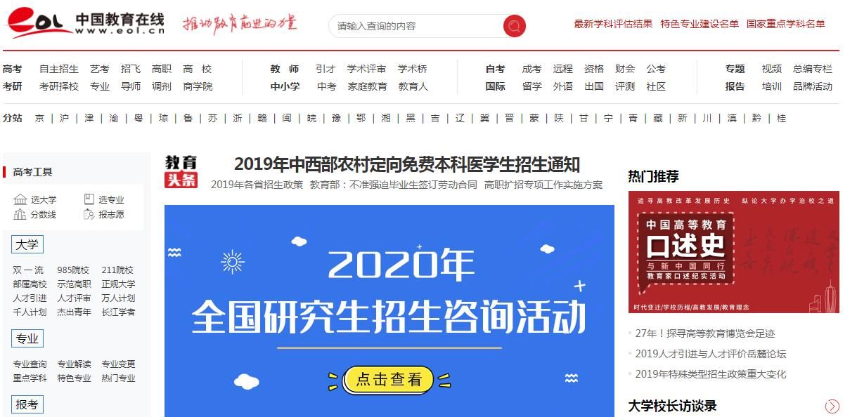 作為中國(guó)教育的聯(lián)結(jié)者和賦能者,中國(guó)教育在線致力于成為推動(dòng)中國(guó)教育前行的力量。多年來,中國(guó)教育在線專注教育領(lǐng)域,堅(jiān)持滿足各類教育需求,對(duì)接國(guó)內(nèi)外2000余所高校、3000余所高中,覆蓋全國(guó)30余個(gè)省市,發(fā)布各類權(quán)威的招考、就業(yè)、輔導(dǎo)等權(quán)威的教育信息,專注于為國(guó)內(nèi)外各大高校、科研院所、教育機(jī)構(gòu)提供從招生服務(wù),到信息化應(yīng)用服務(wù),以及“智庫(kù)服務(wù)”等為主的多元化教育服務(wù)。