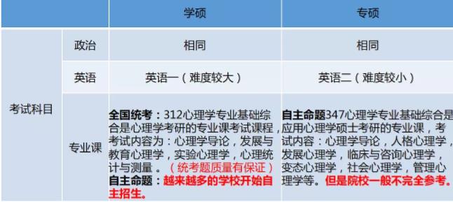 1.學(xué)術(shù)碩士:統(tǒng)考和自主命題。方向:基礎(chǔ)心理學(xué)、發(fā)展與教育心理學(xué)、應(yīng)用心理學(xué),考博方便。學(xué)碩可以調(diào)劑到專(zhuān)碩,專(zhuān)碩不能調(diào)劑到學(xué)碩(一般不可以跨調(diào),除非特殊情況)。每個(gè)方向的分?jǐn)?shù)線(xiàn)不同,一般來(lái)說(shuō)應(yīng)用和發(fā)展心理學(xué)方向更為熱門(mén),分?jǐn)?shù)較高,而基礎(chǔ)方向相對(duì)分?jǐn)?shù)較低。