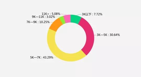 薪酬超7000元的占比達18.35%,但是崗位薪酬超過11K的占比僅占5.08%,這意味著高薪者還是少數,大部分畢業生的薪資尚處于只能滿足自己生活需求的水平。