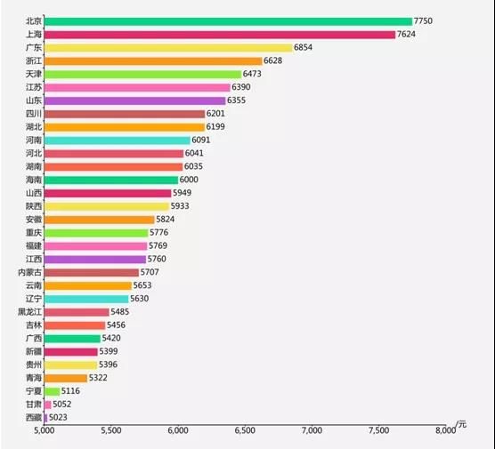 我國31個省市(不含港澳臺)中,北京市高校畢業生的崗位薪酬為7750元,領跑全國;