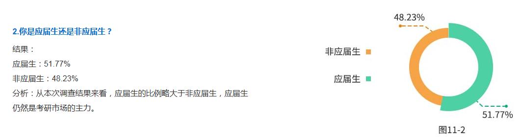 從研招網本次考研調查的結果可看出,非應屆生占了48.23%,接近半數,參加考研2次及以上的人群也占了35%。這其中包含了許多一邊工作,一邊準備考全日制研究生的上班族,他們抱著考上了就辭職去讀研,考不上就繼續工作的心態,覺得無論考上研究生或者考不上都有著落,是最穩妥的一種選擇。