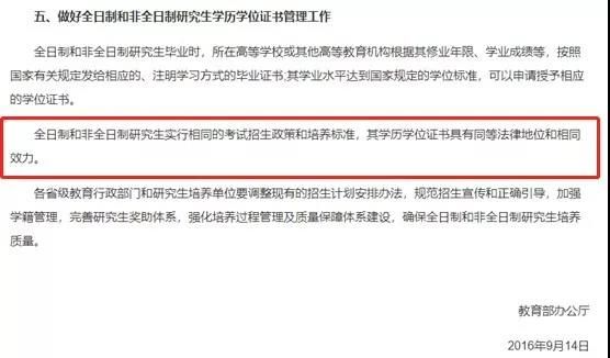 早在2016年09月20日,中國教育部官網就發布了一則《關于統籌全日制和非全日制研究生管理工作的通知》。