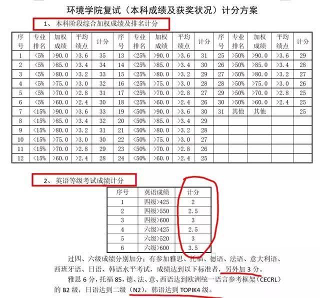 部分學校還會將英語等級納入復試成績計分中。以湖南大學環境科學與工程學院為例,復試計分方式:復試總分分值240分,大學階段學習情況及成績占50分。
